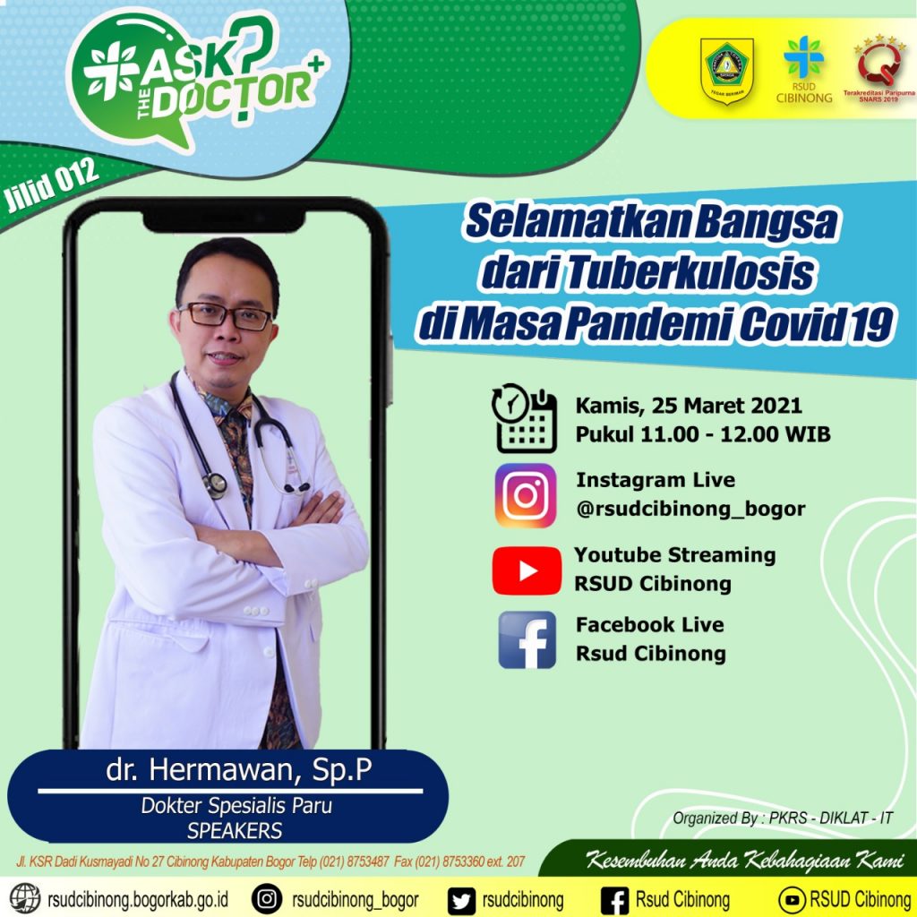 Dalam rangka memperingat Hari Tuberkulosis Sedunia yang jatuh pada tanggal 24 Maret 2021. Saksikan program Ask The Doctor dengan tema SEELAMATKAN BANGSA DARI TUBERKULOSIS DI MASA PANDEMI COVID019.
