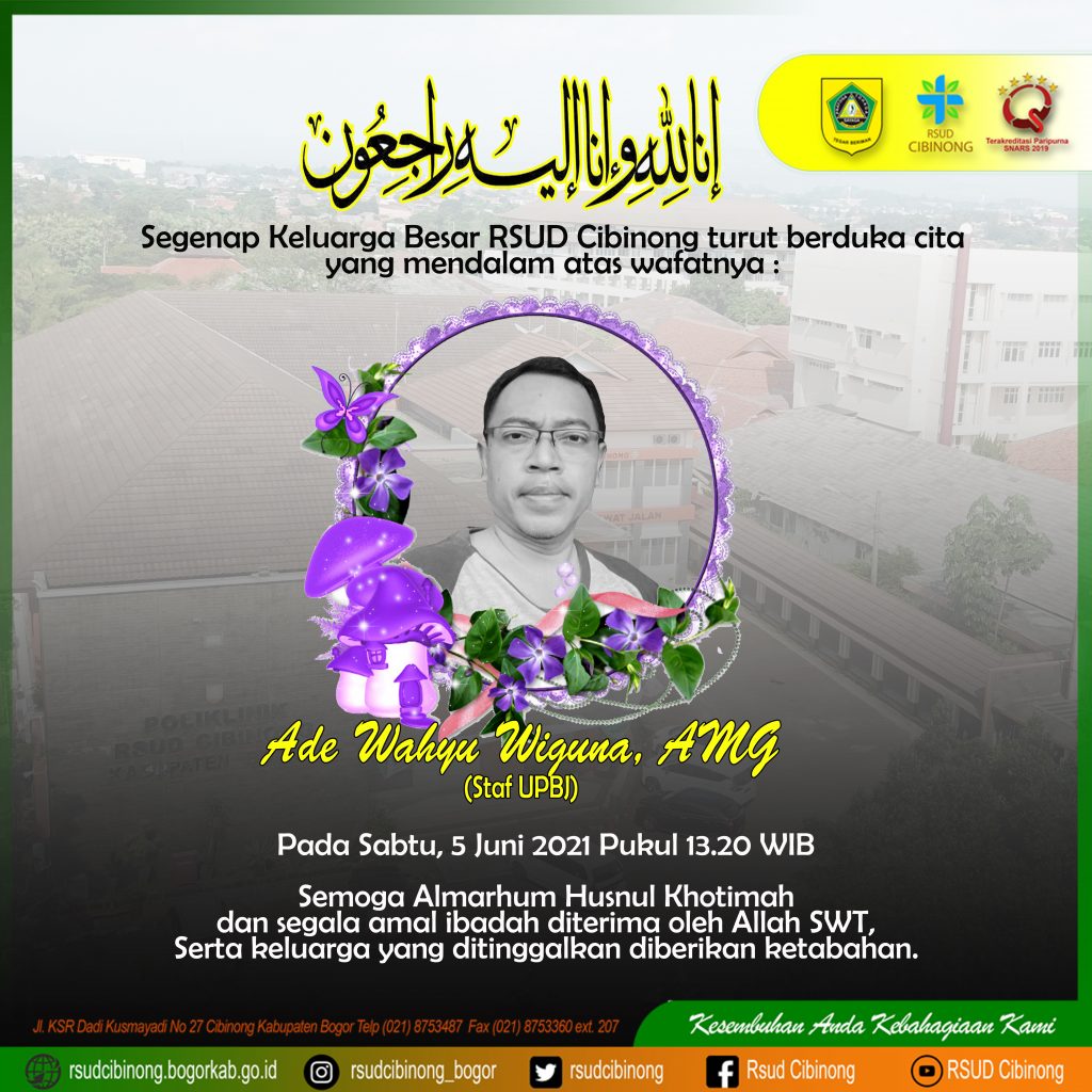 Innalillahi wa inna ilaihi roji’uun  “Sesungguhnya kami adalah milik Allah dan kepada-Nya lah kami kembali”.  Telah berpulang ke Rahmatullah, Bpk Ade Wahyu Wiguna, AMG (Staf UPBJ). Pada hari Sabtu, 5 Juni 2021 Pukul 13.20 WIB.