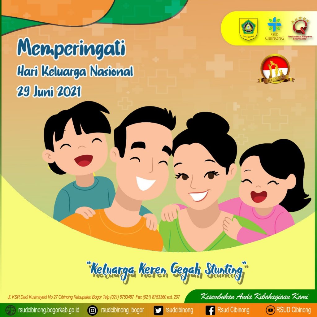 Pada 29 Juni setiap tahunnya selalu diperingati sebagai Hari Keluarga Nasional (Harganas). Pada tahun 2021 ini, Harganas sudah mencapai edisi ke-28 dengan mengambil tema “Keluarga Keren Cegah Stunting” dengan tagar #KeluargaIndonesiacegahstunting yang dapat disemarakkan di media sosial masyarakat Indonesia.