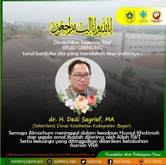 Direksi dan Segenap Staf RSUD Cibinong Kabupaten Bogor turut berduka cita atas wafatnya dr. Dedi Syarif (Sekretaris Dinas Kesehatan Kabupaten Bogor)