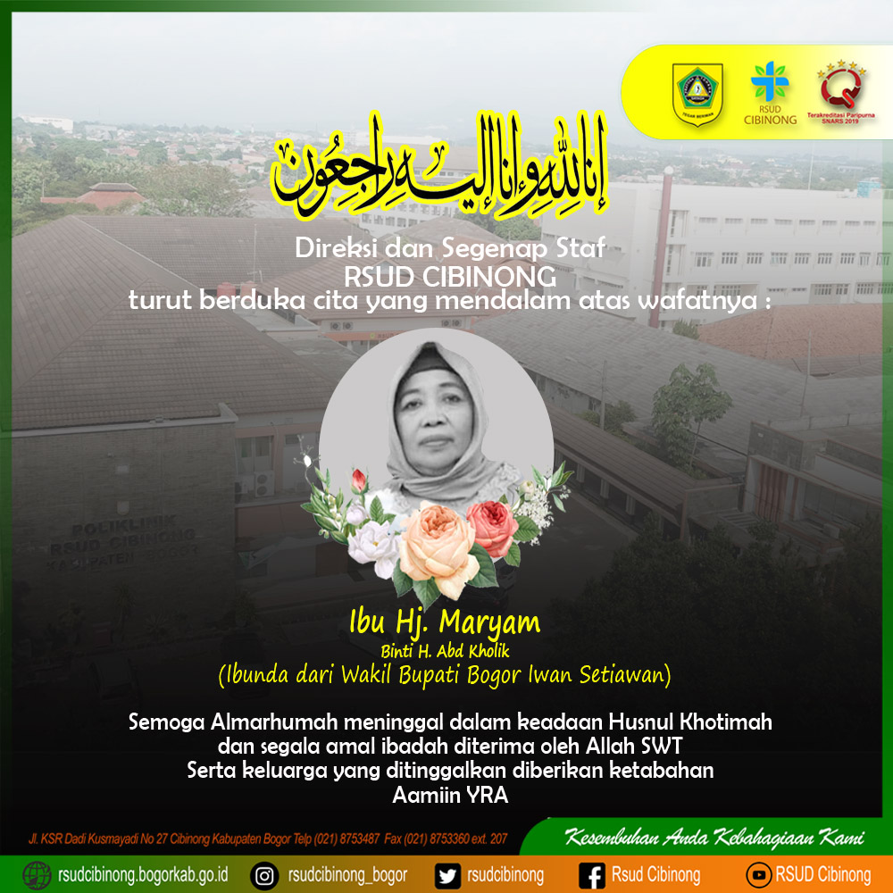Direksi dan segenap staf RSUD Cibinong, turut berdukacita atas wafatnya Ibu Hj. MARYAM Binti H. Abd. Kholik (Ibunda dari Wakil Bupati Bogor IWAN SETIAWAN).
