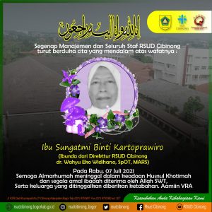 Segenap Manajemen dan Seluruh staf RSUD Cibinongturut berduka cita yang mendalam atas wafatnya : Ibu Sungatmi Binti Kartoprawiro (Ibunda dr. Wahyu Eko Widiharso, Sp.OT, MARS…