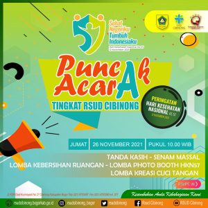 Hai healthies!✨Dalam rangka memperingati HUT Hari Kesehatan Nasional ke-57Mari ikuti serangkaian acara dan kegiatan di RSUD Cibinong! 1. Lomba Tari Kreasi Cuci Tangan 2. Lomba…